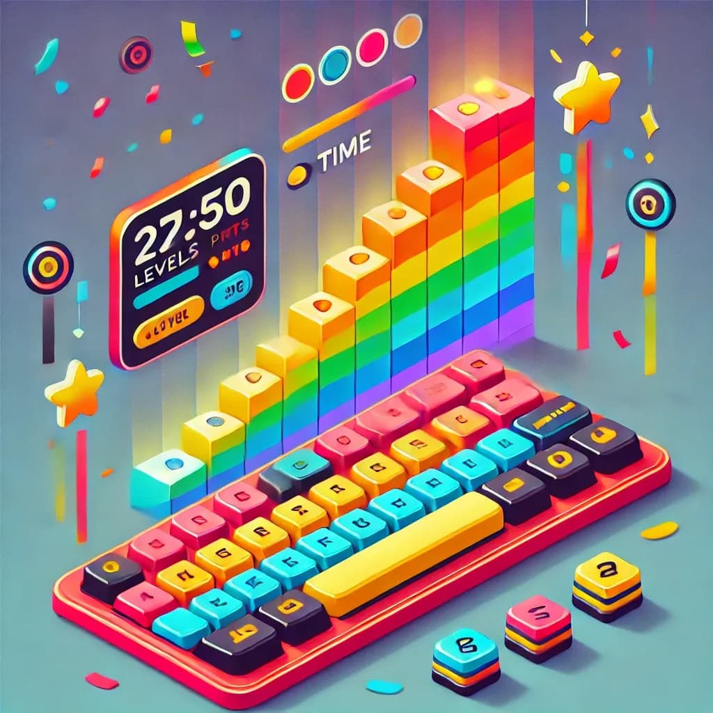 Levels and Points are based on how much time the user has spent in the various modes, with each second invested awarding one point. A Typing Test lasts 60 seconds, so the score for a TT is 60. Accuracy/WPM, etc., are not factored into the point calculation.
